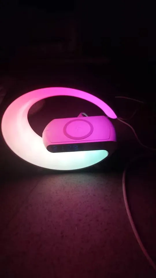 Say goodbye to clutter and hello to a more organized desk with this multifunctional device. Combining a fast wireless charger, ambient RGB lights, Bluetooth speaker, and an alarm clock, it's perfect for creating a serene workspace or bedroom environment. The sleek design not only enhances aesthetics but also streamlines your daily routine. Ideal for iPhone, Samsung, and Huawei users, who need convenience and efficiency in a stylish package.